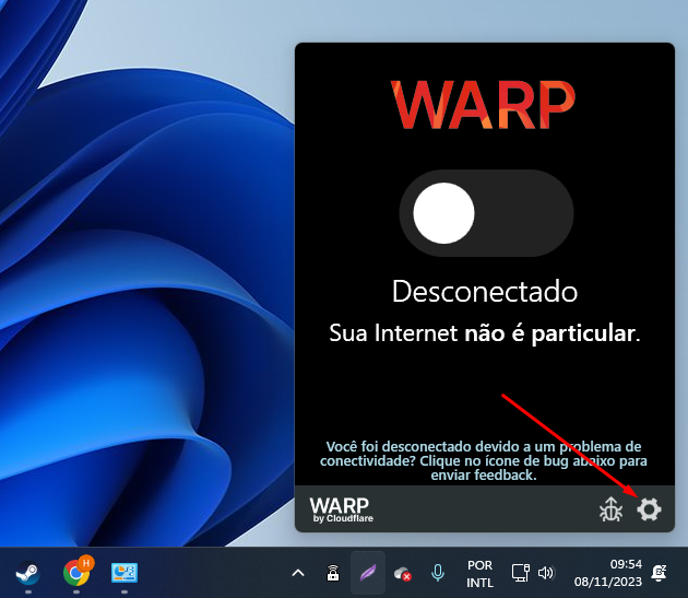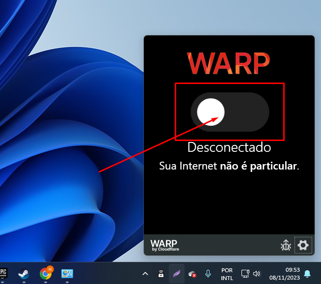Lembre-se de sempre **desativar o WARP** caso sua conexão piore (raramente acontece). Basta abrir o programa e clicar em **Desativar**.